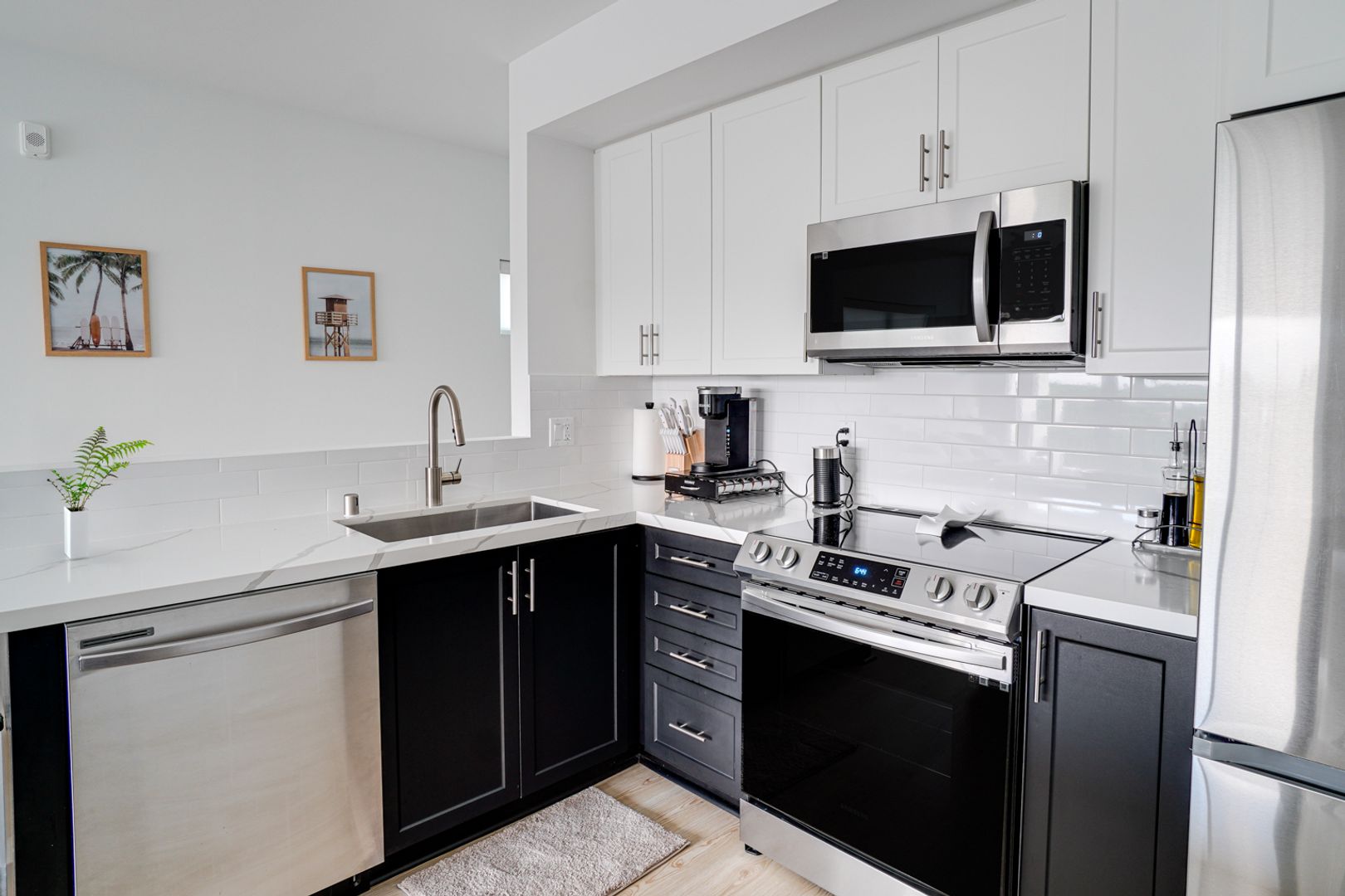 • Stainless steel appliances (refrigerator, stove, microwave)