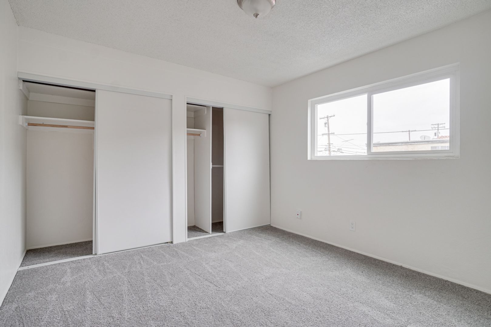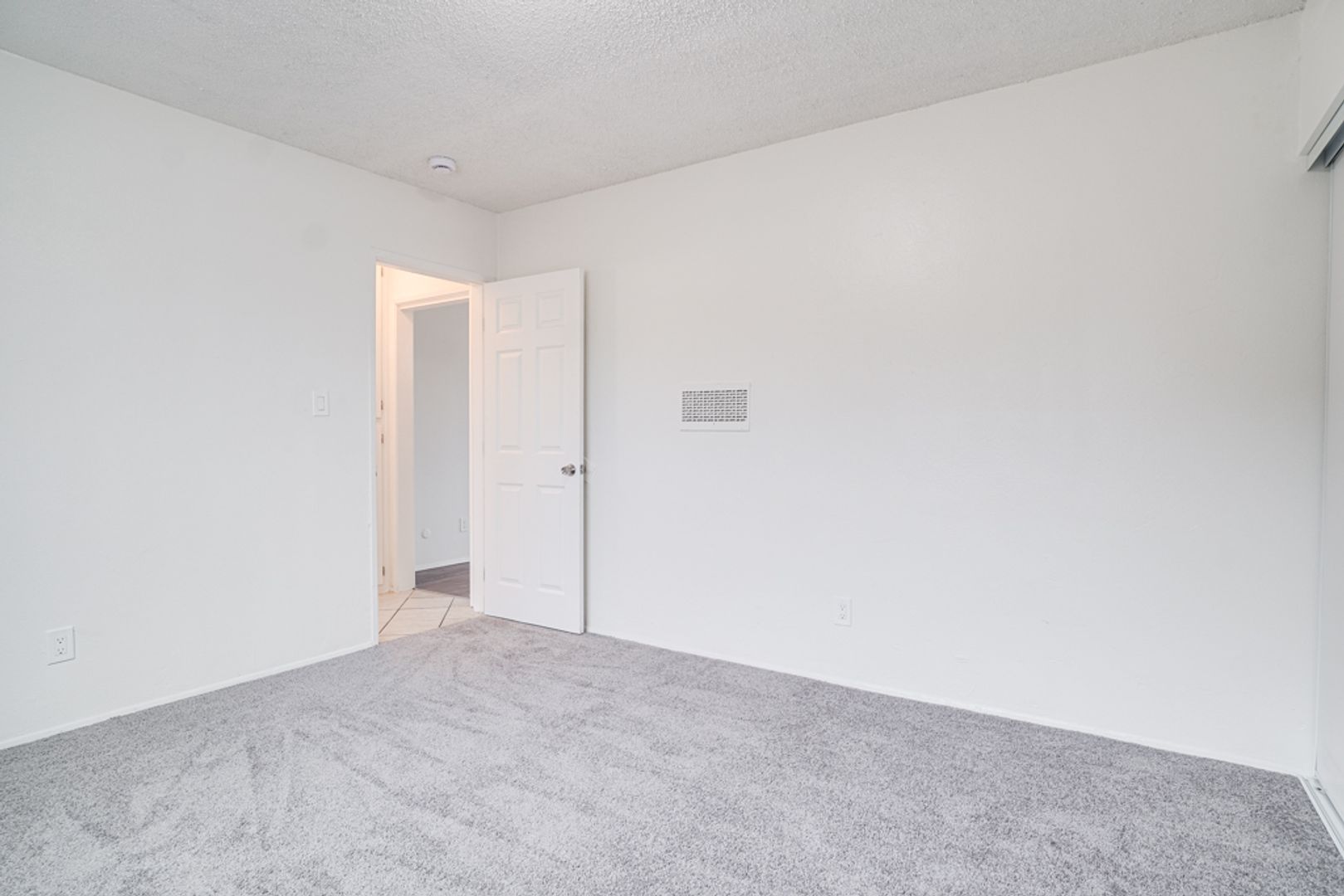 Vinyl plank flooring + carpeted bedroom
