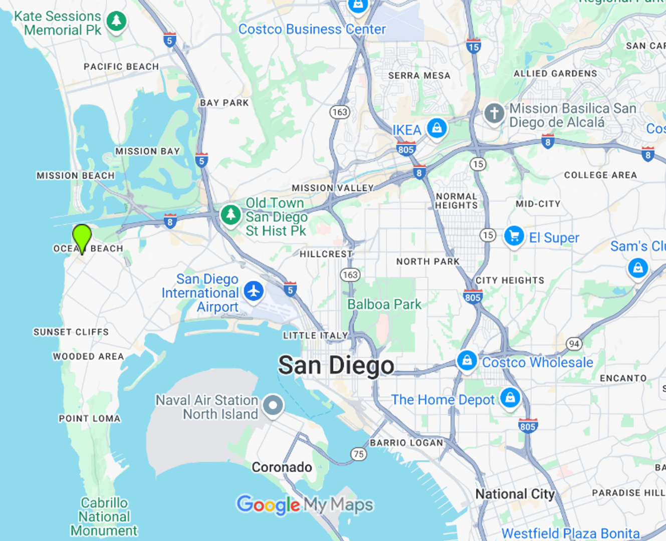 • Ocean Beach shoreline – ~0.3–0.5 miles